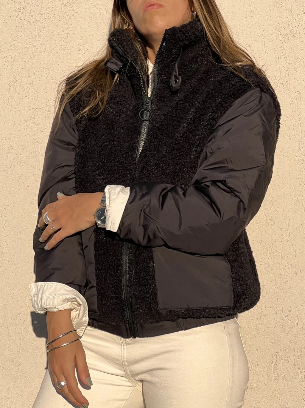 Diseñada para mujeres que priorizan el estilo sin resignar abrigo. Esta campera combina el confort del corderito sintético con la estructura de una prenda urbana. El contraste de texturas le aporta un diseño actual y sofisticado, ideal para el invierno.