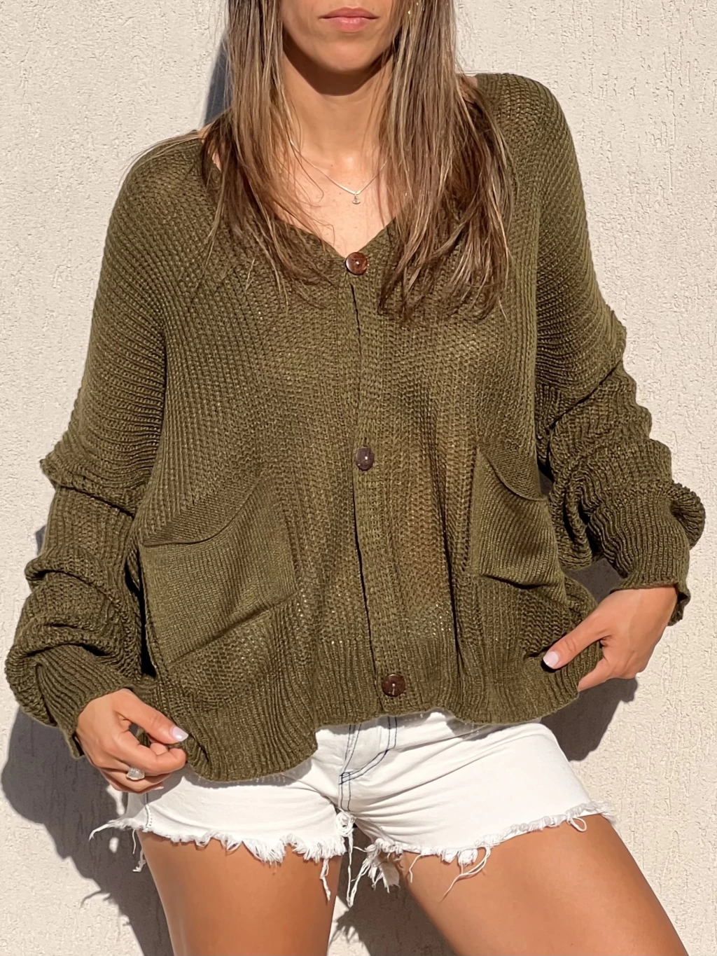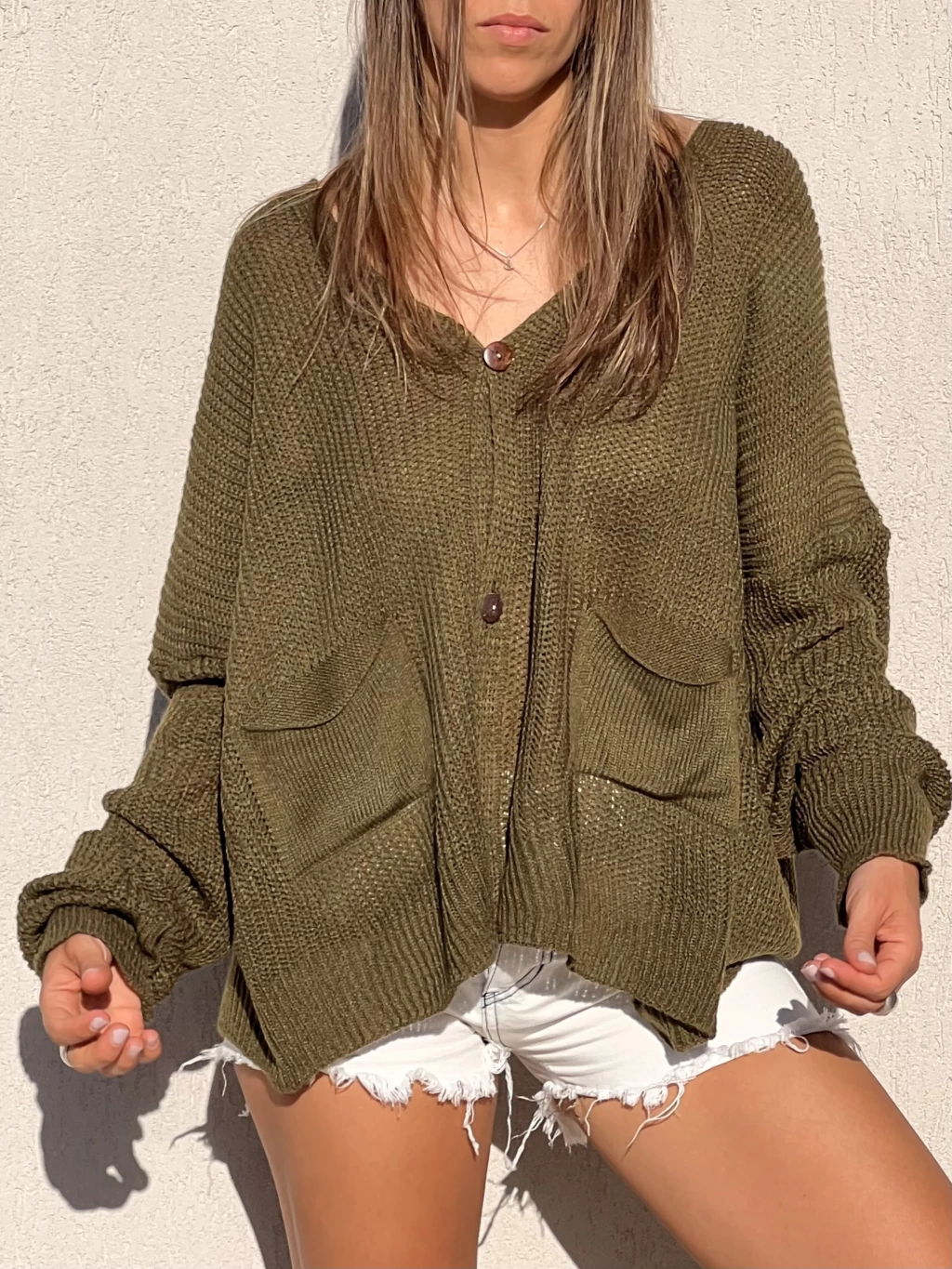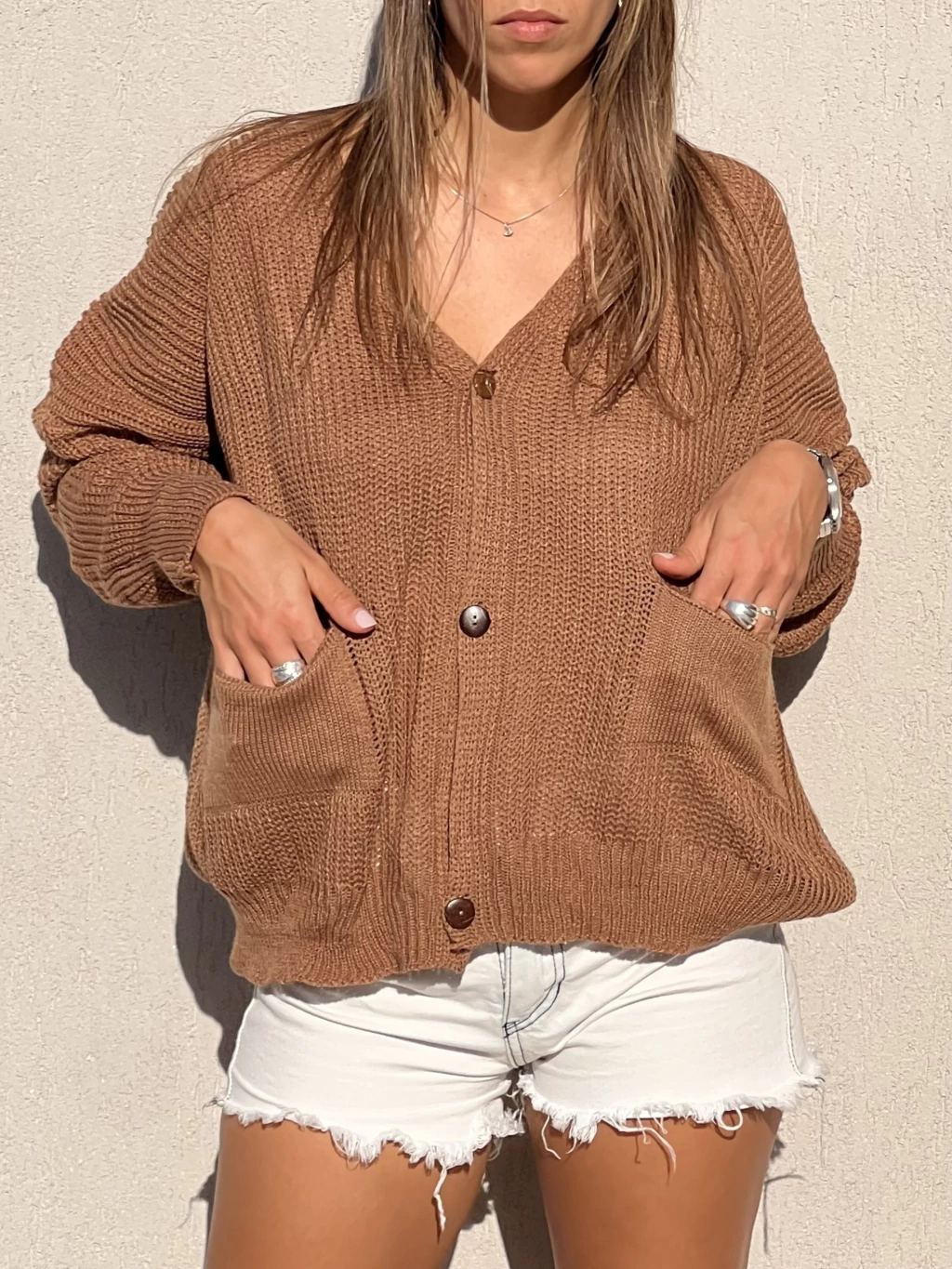 Saco tejido con bolsillos manga globo estilo Oversize. Confeccionado en hilado acrilico