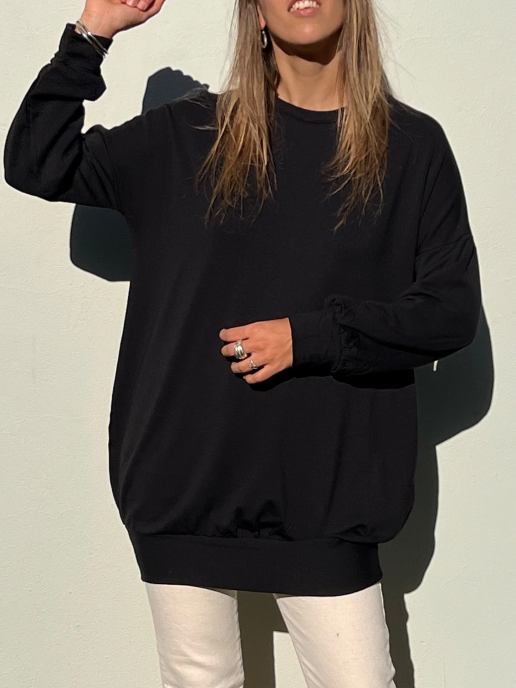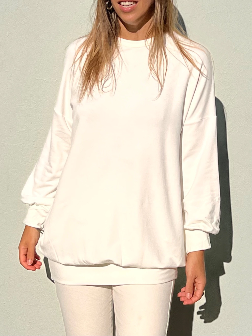 Maxi buzo confeccionado en viscosa FRIZADA suave. Con faja elástica en cintura permitiendo regular su largo.