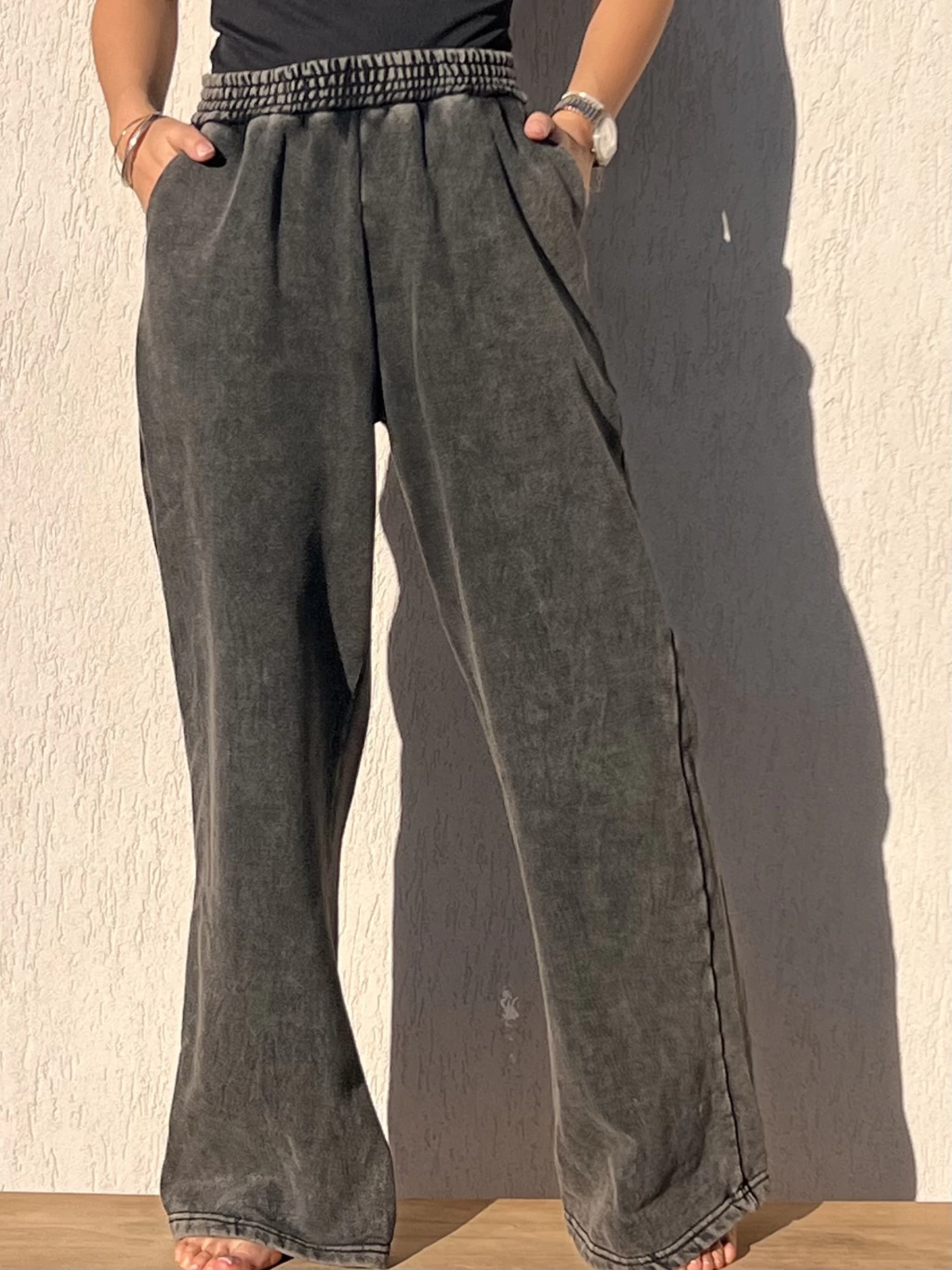 PALAZZO GASTADO CONFECCIONADO EN ALGODÓN FRISADO.