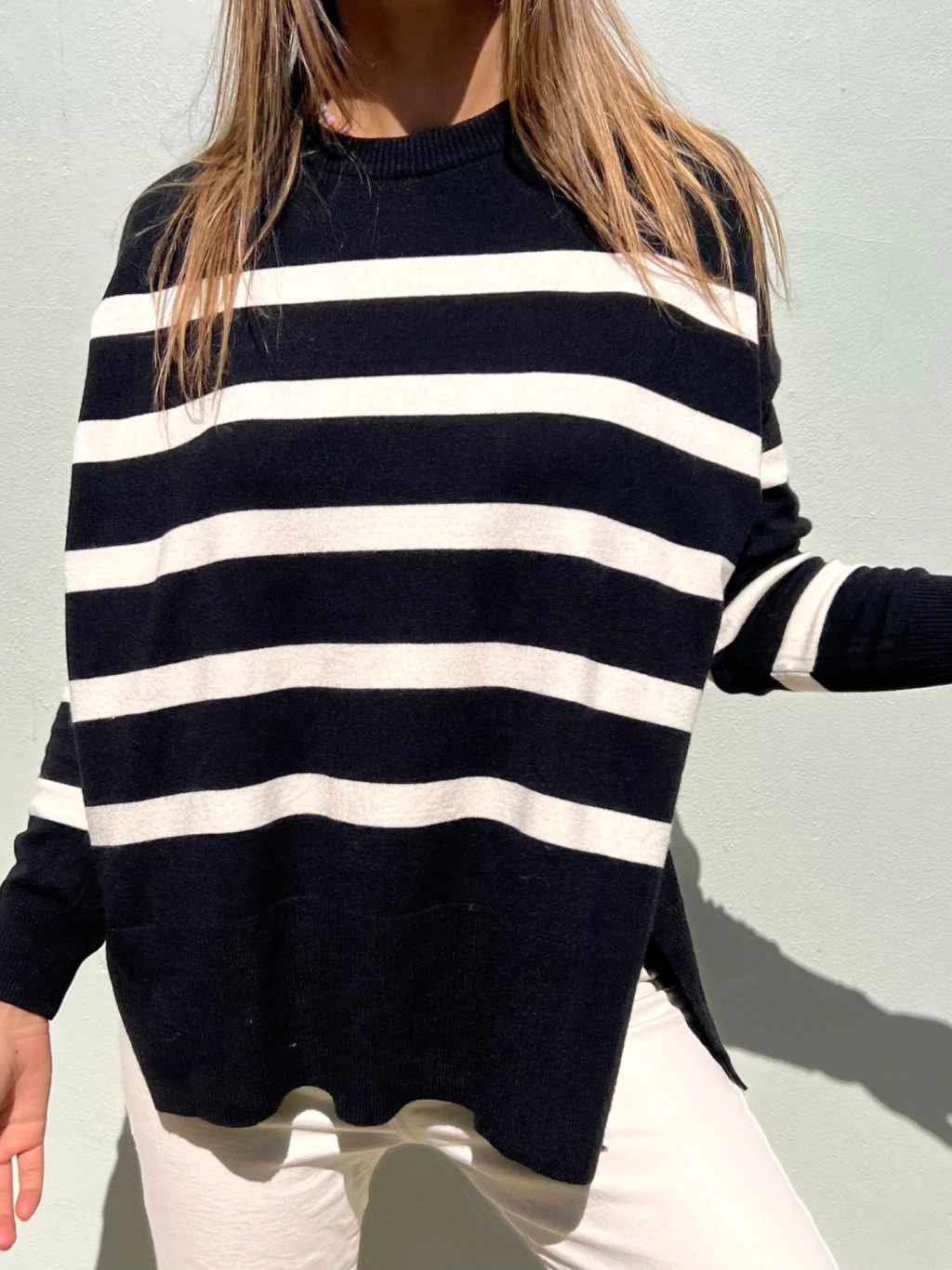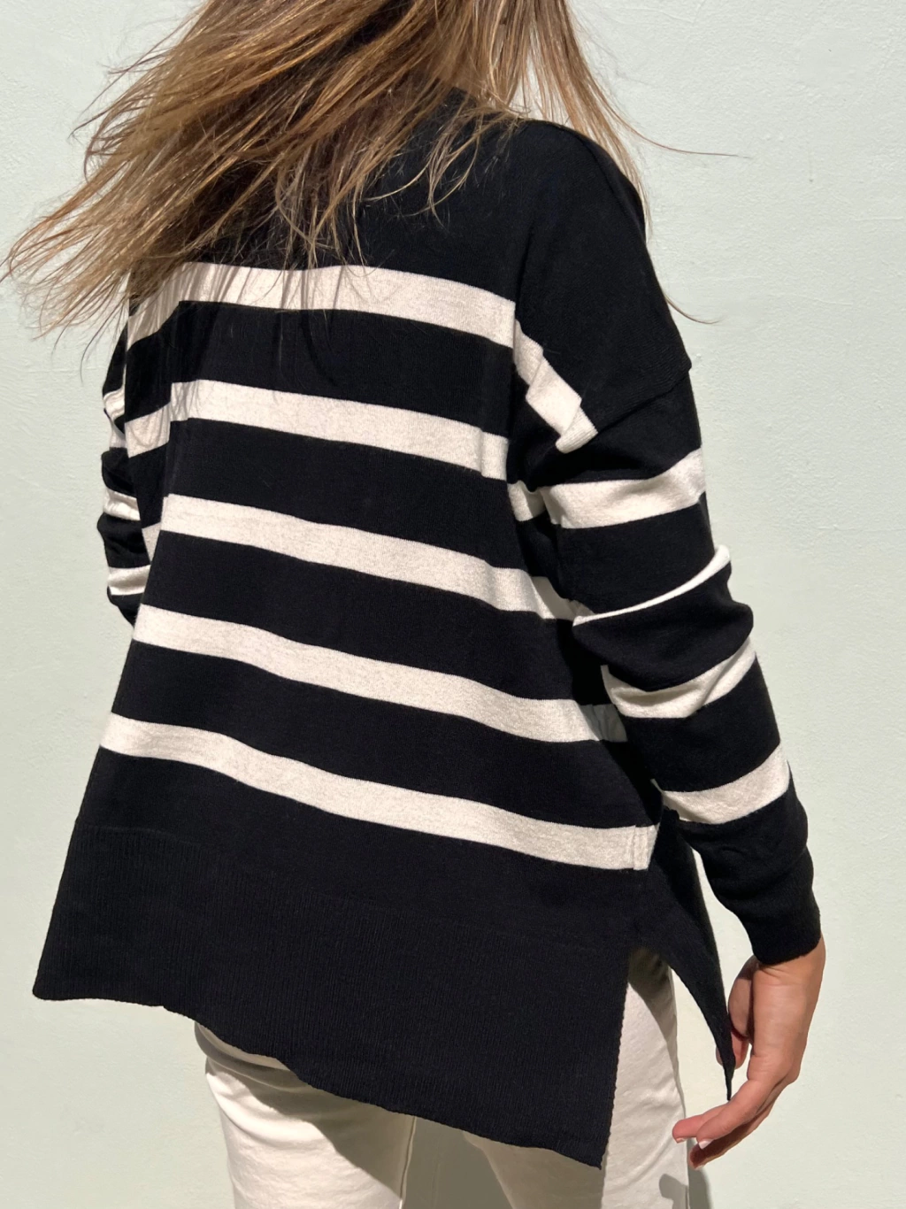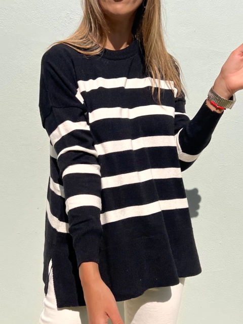 Sueter rayado cuello redondo. confeccionado en Hilado Bremer.