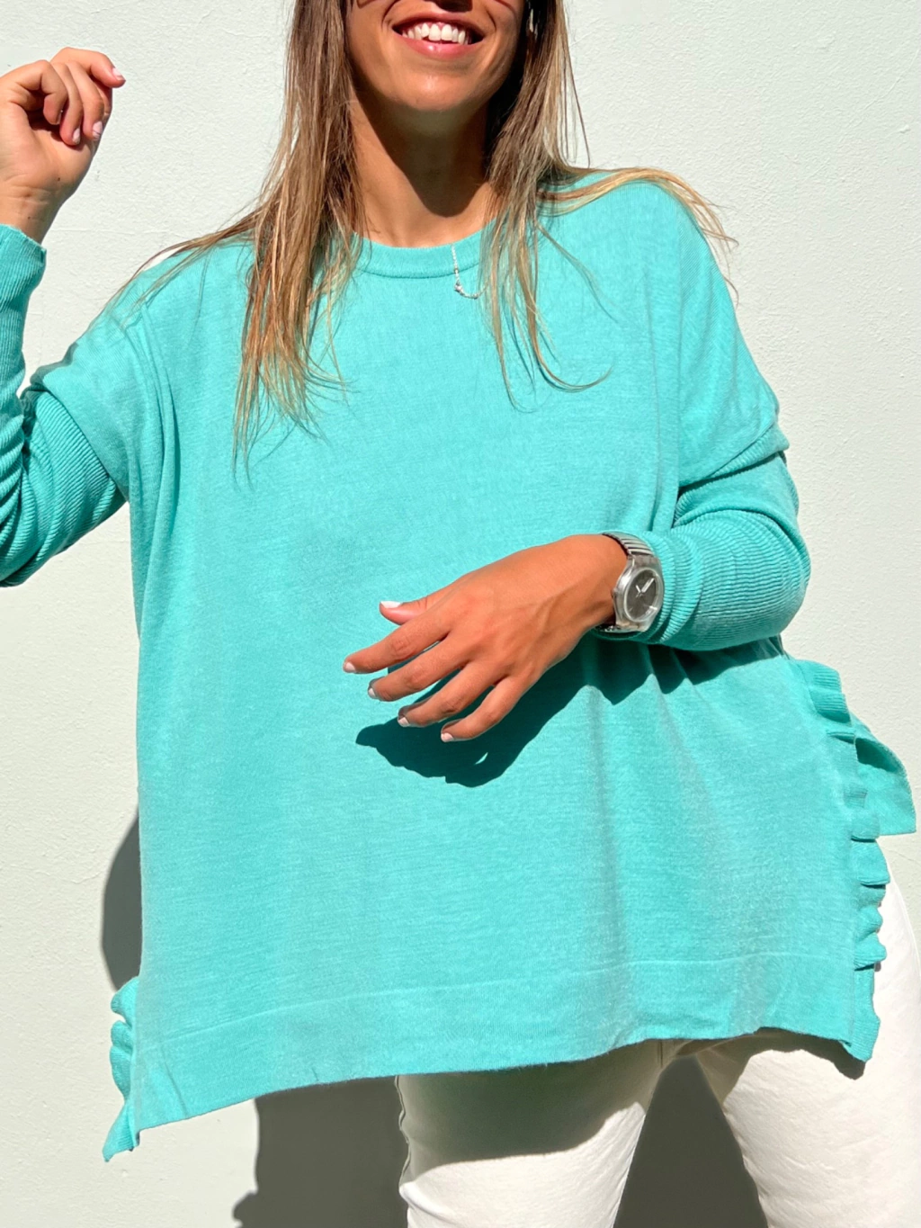 Sueter amplio con volados. Confeccionado en Hilado Bremer.