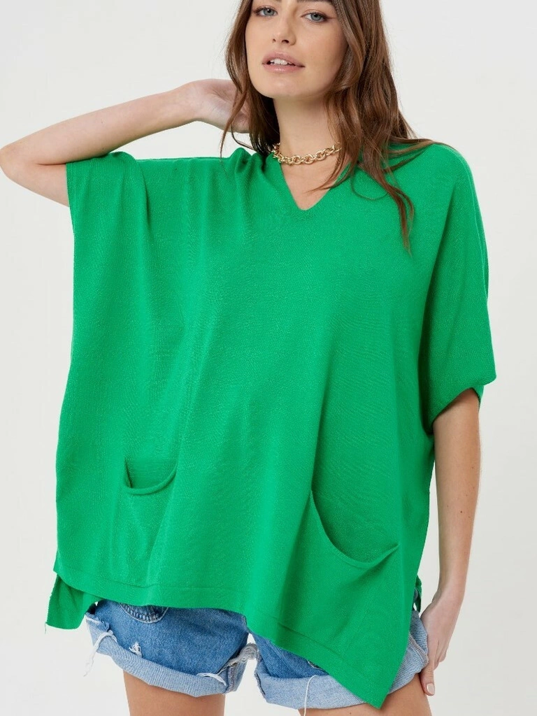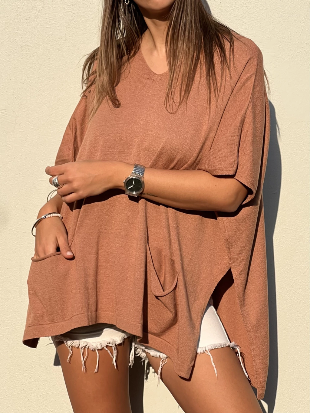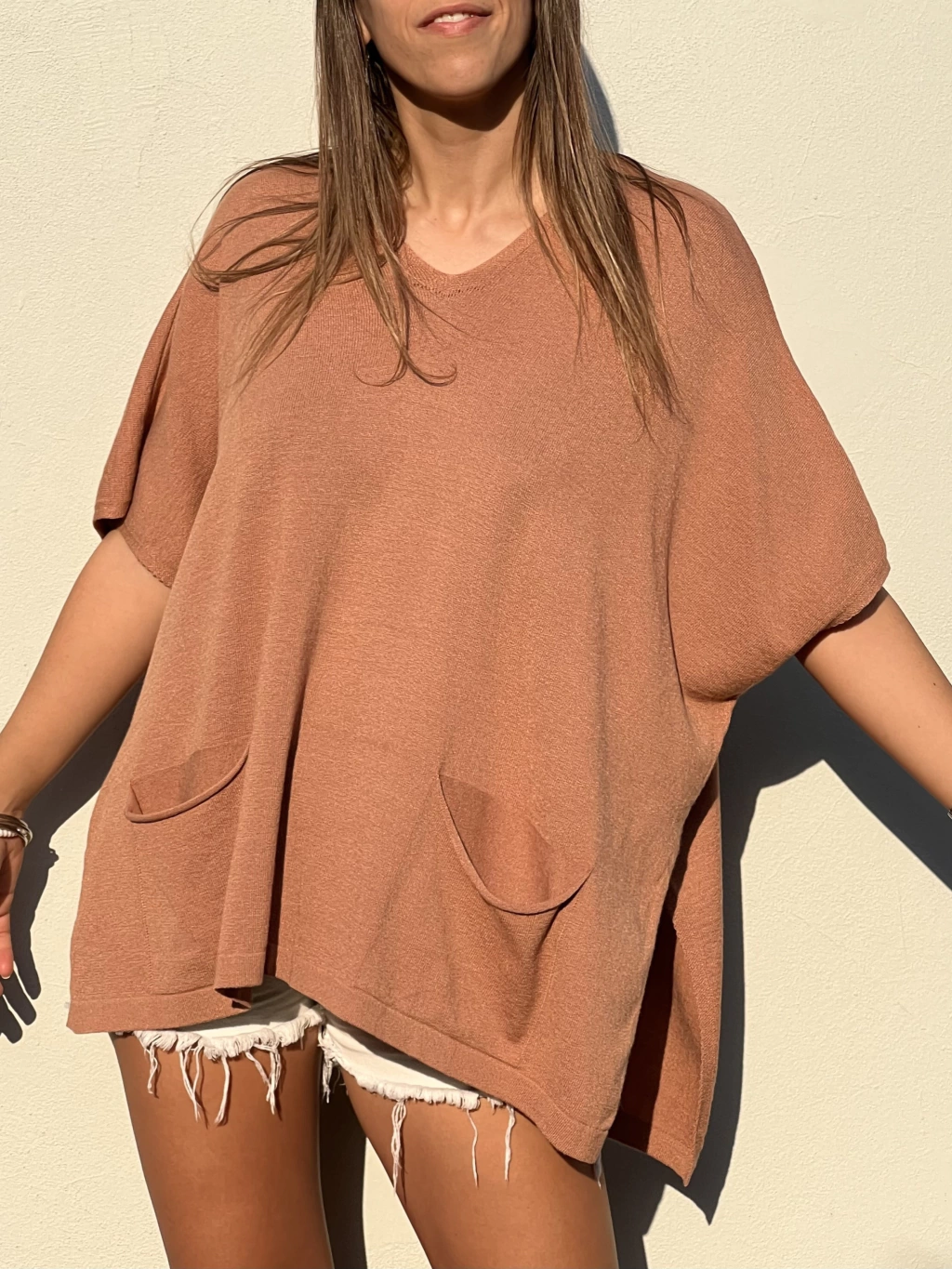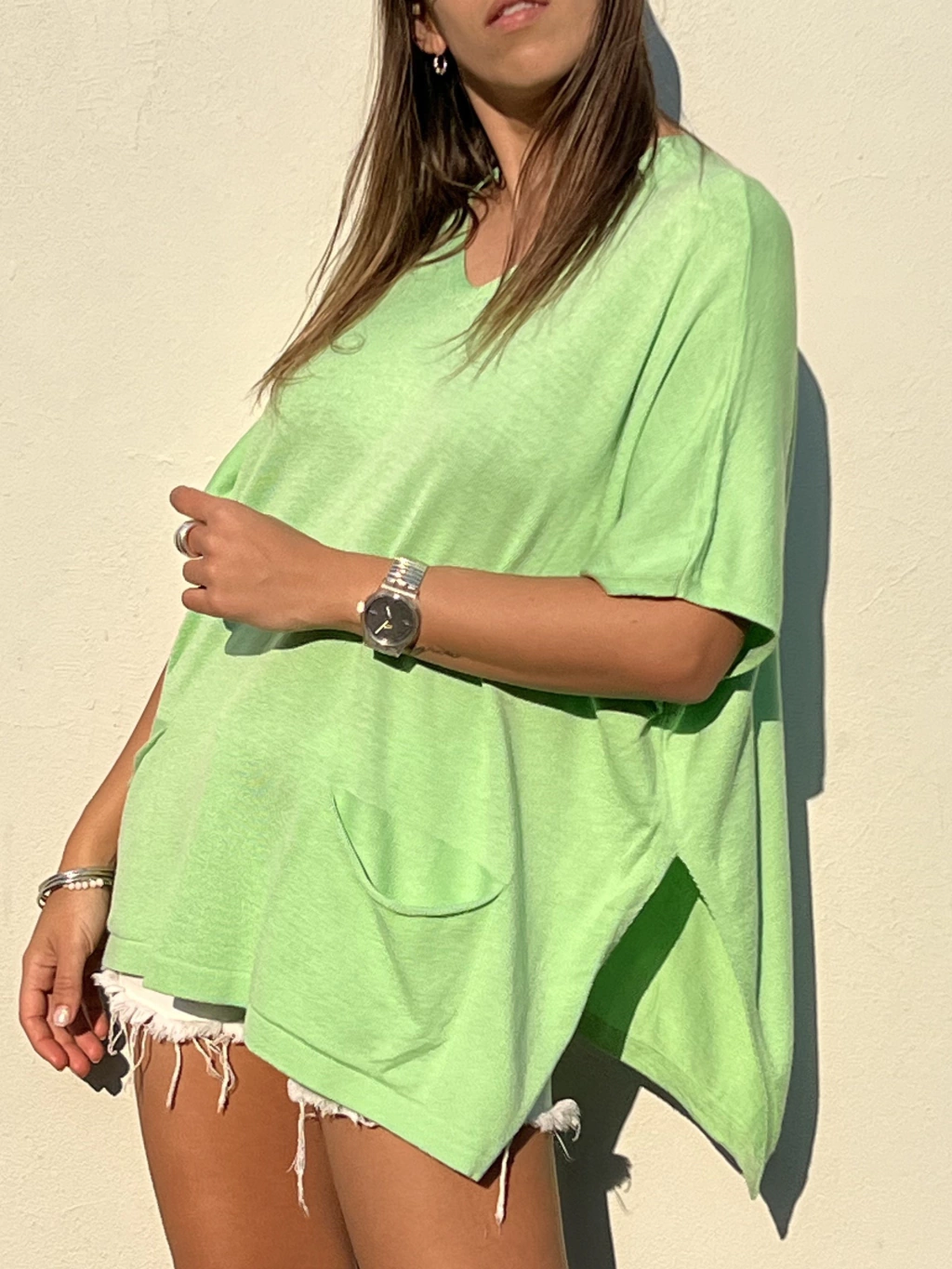 Remerón amplio con bolsillos TALLE ÚNICO tejido hilo Lycra Primavera Verano.