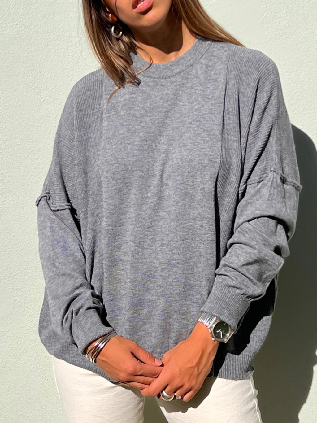 SWEATER TEJIDO MANGAS AMPLIAS Y COSTURA POR FUERA. TALLE ÚNICO CONFECCIONADO EN HILADO BREMER.
