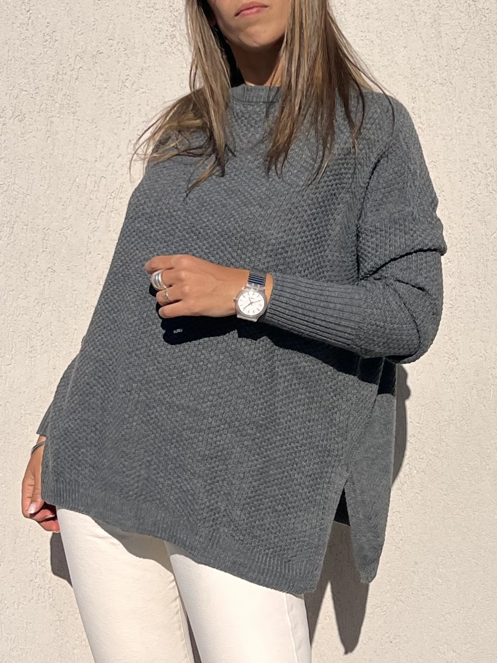 Sweater con tajos laterales. Talle único confeccionado en hilado lana.