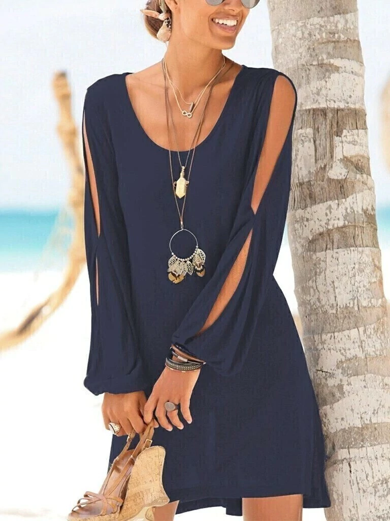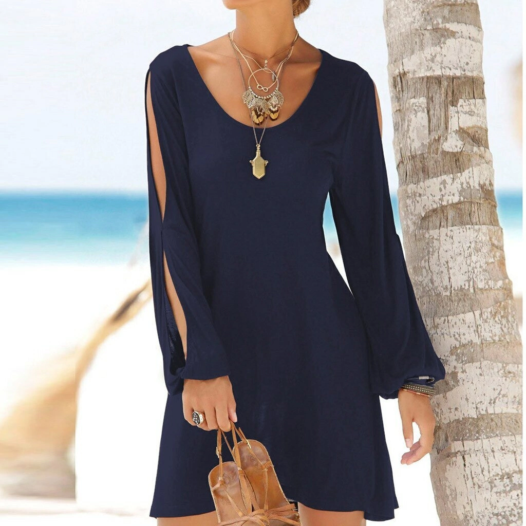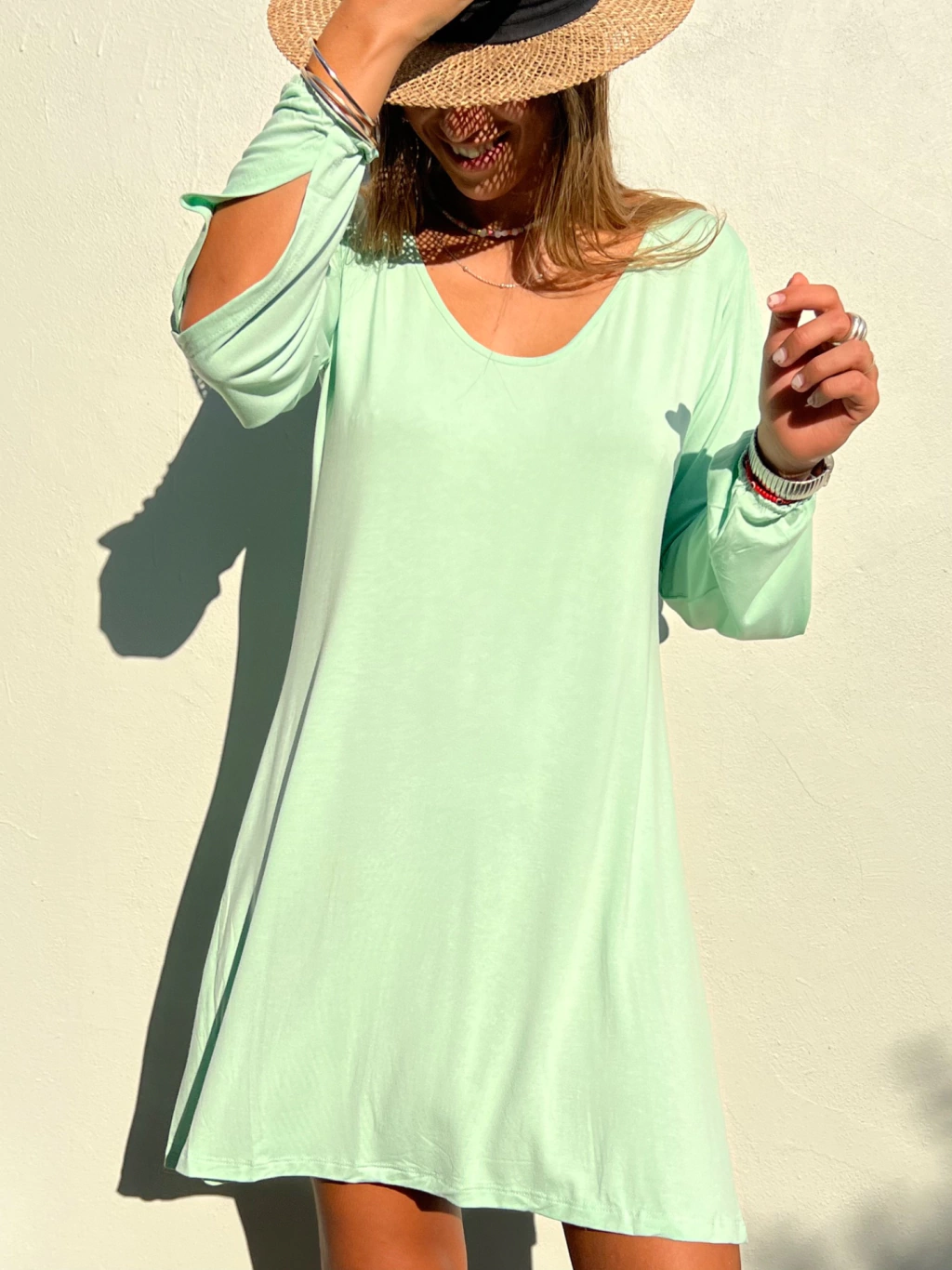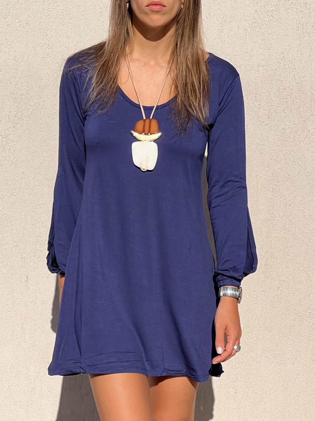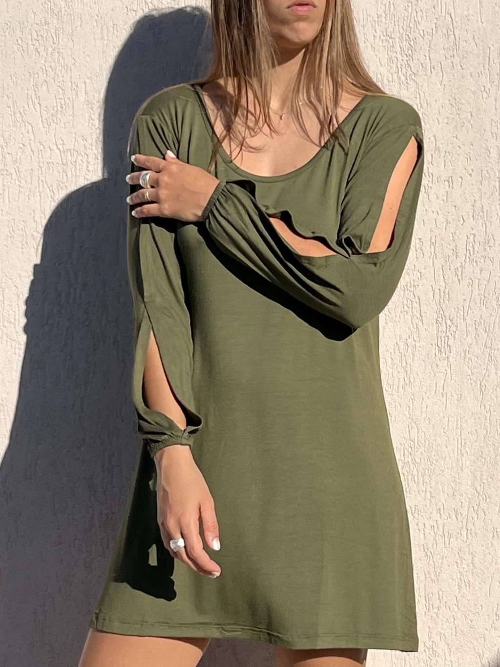 VESTIDO CORTO CON MANGAS LARGAS CONFECCIONADO EN MODAL VISCOSA LYCRA.