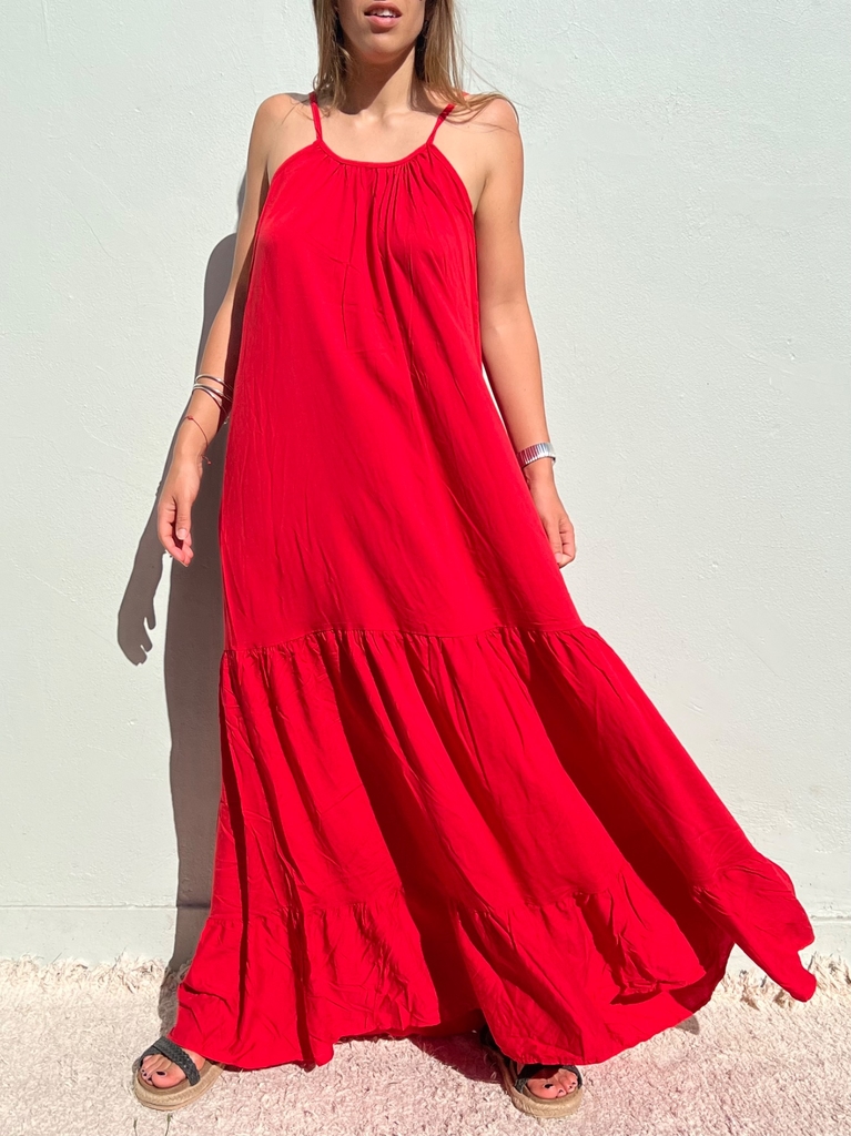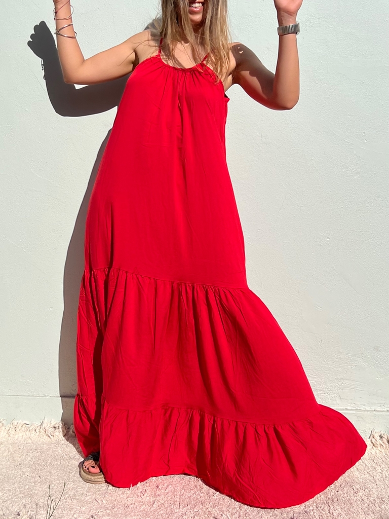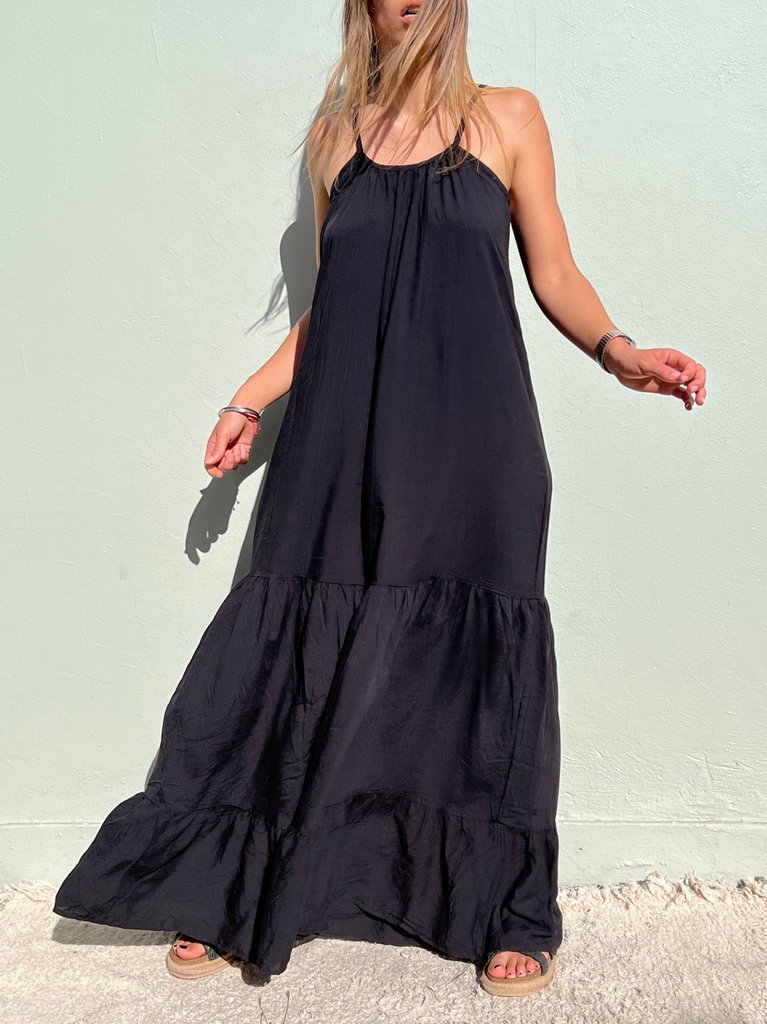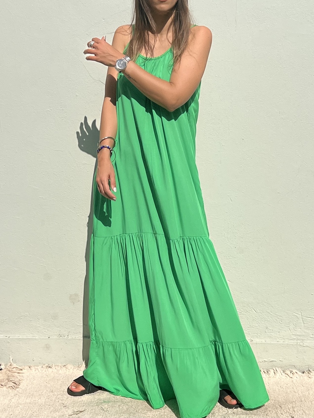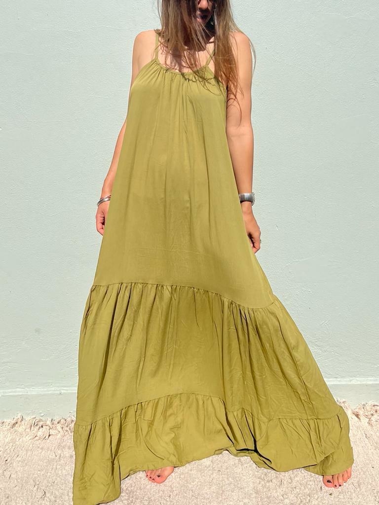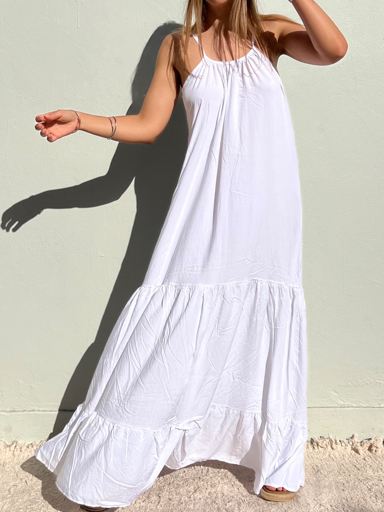 Vestido Largo de Poplin estilo Oversize con triple volado.